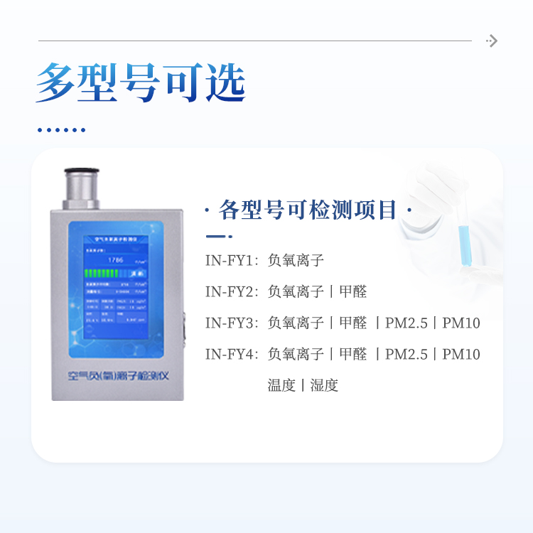 多功能环境负氧离子检测仪IN-FY4操作简单,5.0英寸全彩大屏显示实时测量数据、仪器工作状态、自动计算平均值。操作人员零基础无需专业培训也可快速测量。
